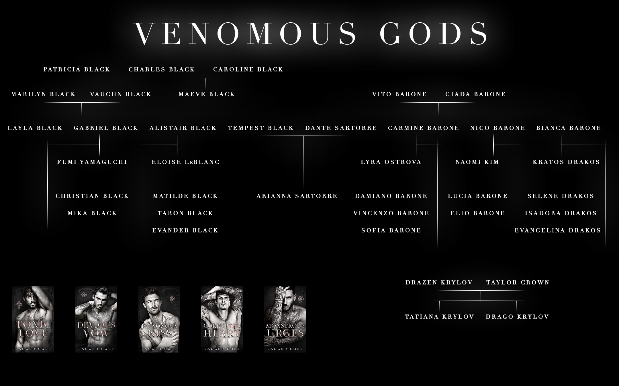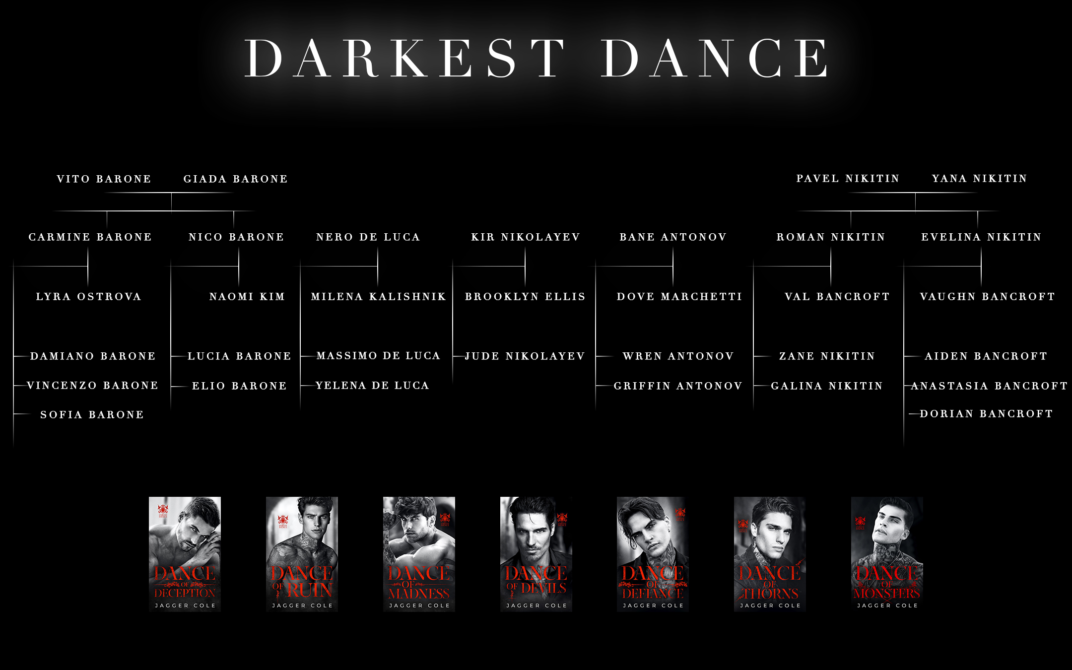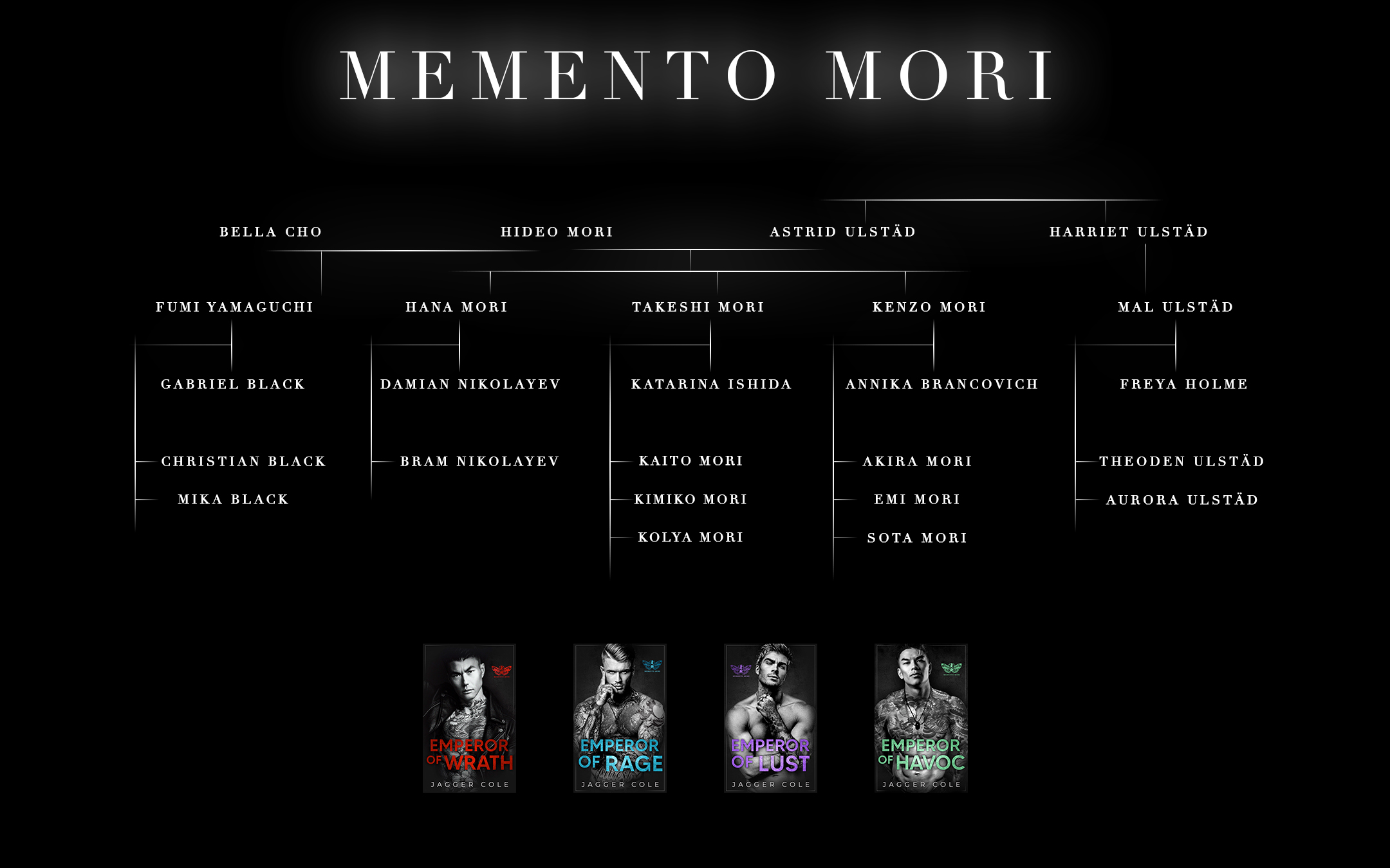 Since all of my books exist in one “universe” (the Jaggerverse, if you will), it can be tricky at times to remember who’s who. Hopefully, these family trees help straighten that out.